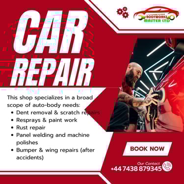 Welcome to BODYWORKS Master Ltd, your friendly neighborhood auto body shop located at 1a balmoral road, E7 0NR, London, UK! Weβre here to revamp your ride and turn those frowns upside down with our expert services. From small touch-ups to major bodywork, our skilled team is ready to get your car looking as good as new. Swing by and experience our welcoming environment where every customer feels like family! π πβ¨